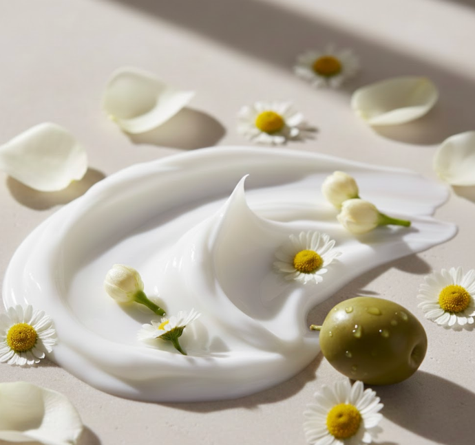 White Flowers (Rose, Jasmine, Daisy): This botanical complex acts as a protective film on the skin, maintaining optimal moisture levels and providing nutrients..